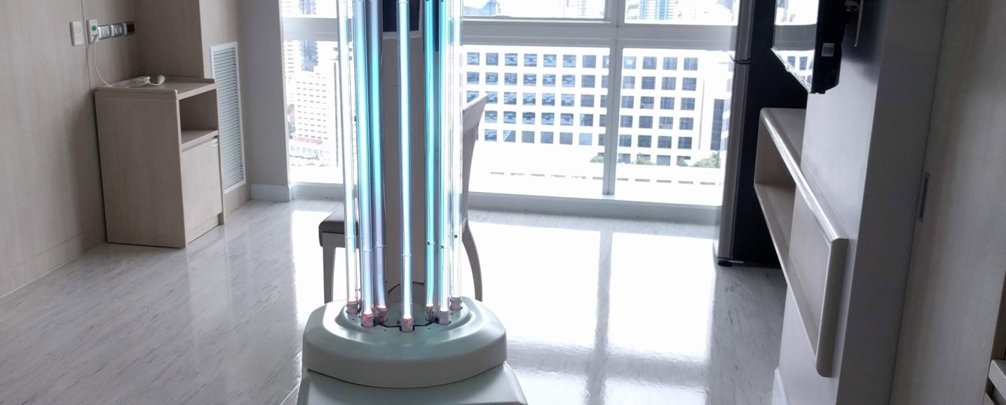 A Danish company called UVD Robots, shipped 2,000 hospital disinfection robots to China in February for use in Wuhan. The robot uses a pulsed light beam and cameras to detect the distance between objects and so move around them. It bathes surfaces with UV light which kills the germs and can shine UV light into areas that would normally go untreated. One example is the space behind a toilet.